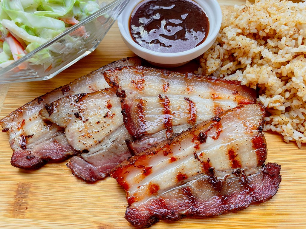 Premium cut of the pork belly covered in original spices and slowly cooked in low smoke and heat for 4 to 6 hours. Tender, flavorful and melts in your mouth.